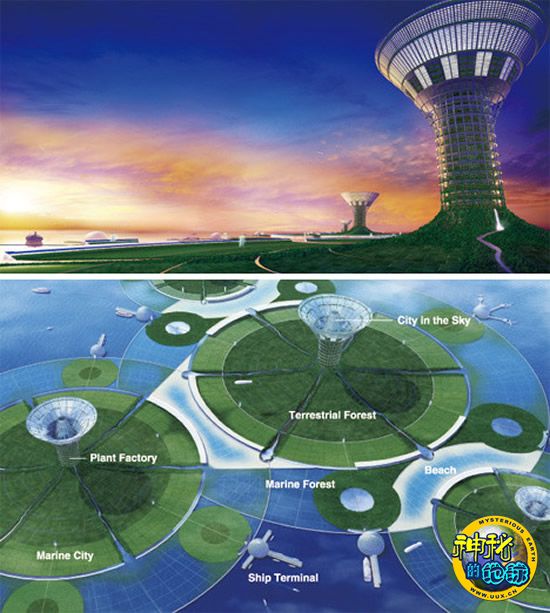清水建设株式会社表示,便利的城市生活让我们逐渐疏远对我们来说真正重要并且真正能够让我们感到快乐的东西,比如健康地活着,文化追求和接触大自然。他们希望针对未来需要重塑和改造城市,帮助我们重新拥抱健康、快乐的生活方式。他们设计的生态城市是一个四面环水的基地,顶部向天空延伸,整体感觉类似一株天然植物。