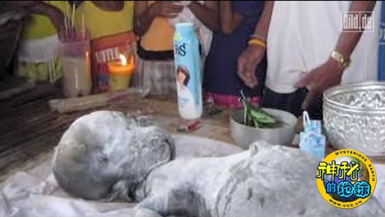 泰国村民祭拜外星人尸体? 来源: 神秘的地球 时间:2010年6月29日 16:24 泰国村民祭拜外星人尸体? 泰国村民祭拜外星人尸体? 泰国村民祭拜外星人尸体? 泰国村民祭拜外星人尸体? 据德国《图片报》6月28日报道,近日,一个令人震惊的视频在互联网上引发争论。在泰国一个村庄里,人们将寺庙用鲜花装扮起来,寺庙的祭坛上躺着一具神秘生物的尸体。 看起来,它既不像人类,也不像动物。难道是泰国村民正在祭拜外星人的尸体?有一些专家相信,这具尸体属于一种未知的地外生命,被这些村民们当成了神灵。 国际在线(Zak) 上一篇 下一篇 TAG: 尸体 泰国 外星人