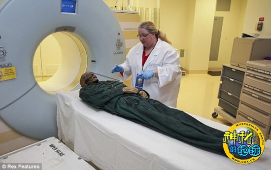 科研人员在洛杉矶一家医院正准备给“寿命”达245岁的男性木乃伊进行CT扫描。