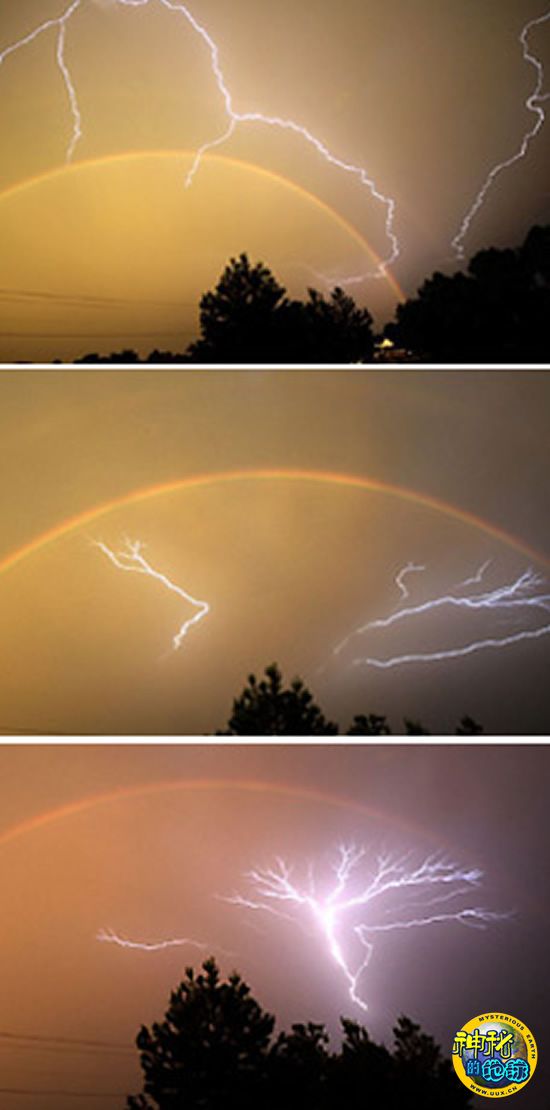 吉隆坡夜空中出现闪电穿越彩虹的奇观 来源: 神秘的地球 时间:2010年7月03日 10:15 吉隆坡夜空中出现闪电穿越彩虹的奇观 据英国媒体报道,7月1日傍晚,马来西亚首都吉隆坡上空出现闪电穿越彩虹的奇幻景象。彩虹通常是由空气中的水滴折射太阳光,将白色太阳光折射出七种不同色彩的光线而发生的自然现象,而闪电是由带不同电荷的云层相互摩擦而形成的放电自然现象。尽管对于我们来说这两种自然现象单一发生极其平常,但两种自然现象同时发生的情况并不多见。 国际在线(海澜) 上一篇 下一篇 TAG: 彩虹 奇观 闪电