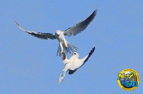 小白尾鸢抢食 来源: 神秘的地球 时间:2010年7月05日 10:29 一只小白尾鸢从父亲口中接食的精彩一刻 小白尾鸢以最快的速度从父亲那里抢到了捕获的田鼠 2010年7月3日消息,退休的外科医生菲尔·苏(Phil Sue)在旧金山湾藏匿拍摄达100小时后,终于拍到了一只小白尾鸢从父亲口中接食的精彩一刻。这只七周大的小鸟和两个兄弟姐妹先是一起在橡树上等候父亲外出觅食归来,随后便以最快的速度敏捷地从父亲那里抢到了捕获的田鼠。 China Foto Press 上一篇 下一篇 TAG: 白尾鸢
