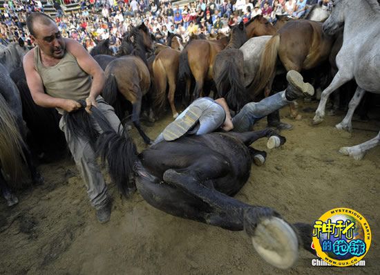 西班牙传统的“捕野马节” 来源: 神秘的地球 时间:2010年7月05日 11:14 当地时间7月3日,西班牙萨武塞多,年轻人在传统的“捕野马节”上驯服野马。作为古老的加利西亚节日,捕野马节可以追溯到青铜时代的驯兽练习。 中新网 上一篇 下一篇 TAG: 西班牙 野马
