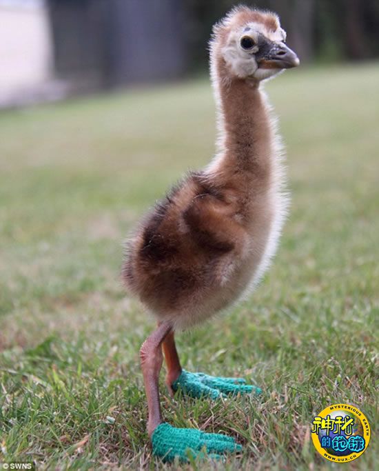 这只非洲小皇冠鹤一出生时脚趾弯曲,经过公园饲养员的努力,小家伙现在终于可以站直了走路
