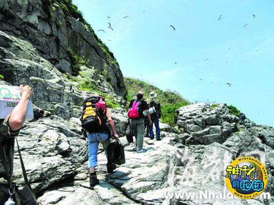 冒着酷暑烈日志愿者登上无人岛观鸟