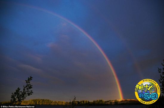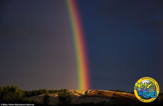 这张照片摄于芬兰北部,在那里,每逢夏天太阳便不落山,而且光线足够强烈,使得午夜也能形成彩虹