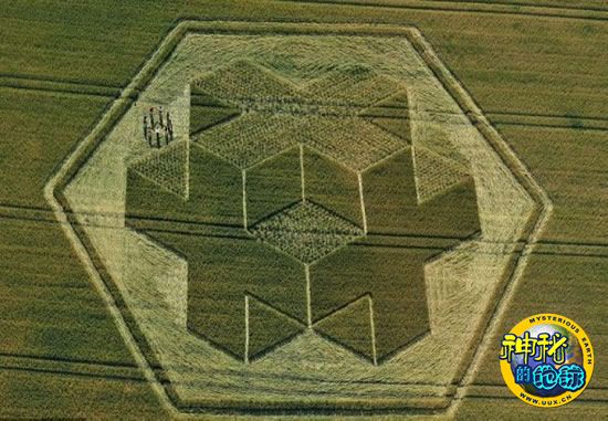 英国威尔特郡沃敏斯特克莱山的小麦田里惊现一个奇妙的三维麦田怪圈,这个设计精巧的怪圈宽度达200英尺(约合60.96米),借助光幻觉给人留下三维立方体的印象,而其创造者仍是一个谜。