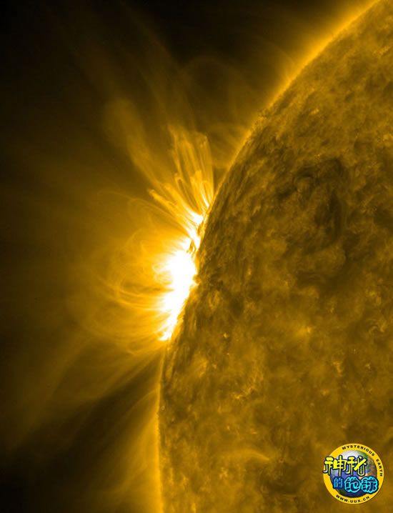 捕捉到从太阳表面发出来的明亮磁力线