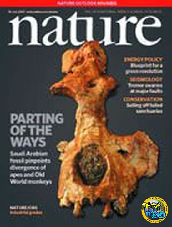 灵长类的化石记录很稀少,仍然存在实质性的缺口。其中一个缺口是“旧世界”的猴子与“新世界”高等灵长类的类人猿和人类的分化。这种分化以前仅限于“非洲—阿拉伯大陆”的渐新世,但在沙特西北一个新的、处在进化树根部的狭鼻猿的发现缩小了这个缺口。沙特发现的这个材料来自距今约2800万年前的渐新世中期,它的狭鼻猿分化特征非常少,说明“旧世界”的猴子与“新世界”的类人猿之间的分化发生在那个时期之后。本期封面所示为头盖骨的前部,其犬齿和上颚宽臼齿都在原处。头盖骨的大小表明这是一个中等大小的灵长类,体重在15公斤和20公斤之间。