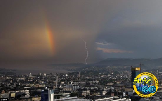 瑞士上空闪电与彩虹同现壮观瞬间 来源: 神秘的地球 时间:2010年7月16日 13:01 瑞士上空闪电与彩虹同现壮观瞬间 摄影师7月14日捕捉到闪电伴随着彩虹,从瑞士苏黎世湖上空的暴风云中“破茧而出”的精彩瞬间。 在同一时间内看到闪电和彩虹本就罕见,而暴风骤雨的天气与苏黎世往日平静、安详的景象又形成了鲜明对比,更彰显了大自然的力量。苏黎世7月15日依旧乌云密布、潮湿,气温可能会升至摄氏23度以上。 新浪科技(孝文) 上一篇 下一篇 TAG: 彩虹 瑞士 闪电