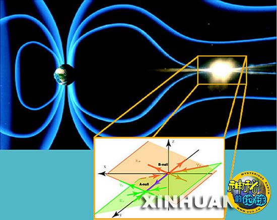 欧航局当天发表公报说,“星簇计划”的4颗卫星伦巴、桑巴、萨尔萨和探戈环绕地球时拍下太阳风影响近地空间及地球磁气圈的三维图像,而这一计划的另一个重要成就是获得了第一个磁重联区的磁零点三维图。