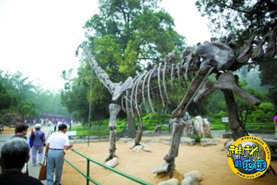 游客参观马门溪龙骨架