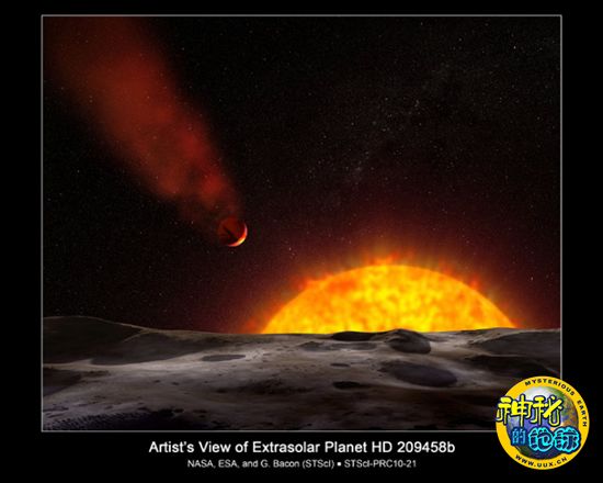 艺术想象图:太阳系外行星HD 209458b及其彗星状气体尾