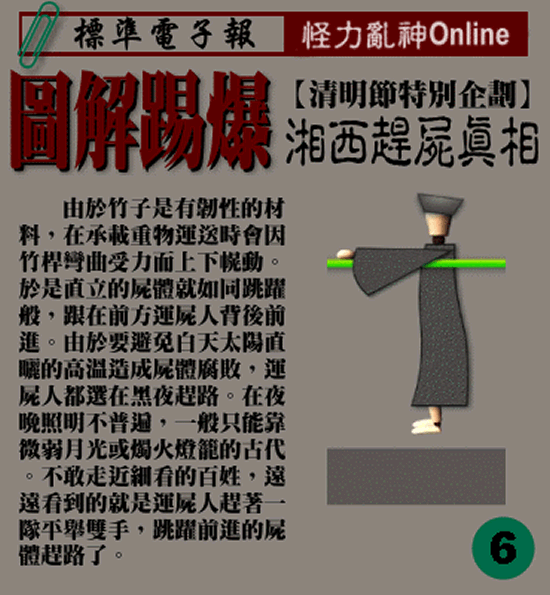 揭秘湘西赶尸 来源: 神秘的地球 时间:2010年7月21日 12:07 特别值得一提的是,这种奇特的行业,只有在湘南西部才行得通。因为,一、只有湘西有“死尸客店”。二、只有湘西群众闻见赶尸匠的小阴锣,知道回避。三、湘西村外有路,而其他省的路一般都穿村而过,他们当然不会准死尸入村。四、湘西人闻见阴锣声,便会主动将家中的狗关起来,否则,狗一出来,便会将死尸咬烂。因而,这种十分奇特的赶尸行业,只有湘西才有。 死尸怎么会被活人赶着走,很多科学家在进行研究。各说不一。说不定有一天,会使这一常人难以理解的奇特行业和现象,得到应有的科学解释。 水母网 上一页12345 上一篇 下一篇