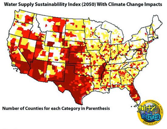 一项新的分析表明,到2050年,气候变化将使美国1/3的县面临水资源短缺的风险。这份报告由美国国家自然资源保护委员会(NRDC)委托完成,该组织正在呼吁美国国会通过气候立法,从而减少水资源短缺带来的影响。尽管这份报告并没有开创新的研究领域,但它却就气候变化问题给出了一个很好的总结。