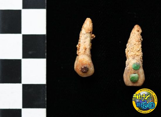 1600年前玛雅王室古墓发现罕见史前古物 来源: 神秘的地球 时间:2010年7月23日 13:17 6. 镶有宝石的牙齿 镶有宝石的牙齿(图片提供: Arturo Godoy) 在这座古墓中唯一成年人的口中,考古学家发现了镶有宝石的牙齿。考古学家认为,这位成年人应该是一位国王。据部分破译的象形文字,他的名字可能是“红海龟”或“大海龟”。休斯顿解释说,“对于玛雅人来说,海龟带有宇宙的意义,就像他们所描绘的世界模型一样。” 休斯顿推测,这位国王曾经在伊尔-佐兹建立一个王朝,伊尔-佐兹王朝位于大玛雅强国蒂卡尔的西方,曾经对蒂卡尔的疆土虎视眈眈。 上一页12345678下一页 上一篇 下一篇