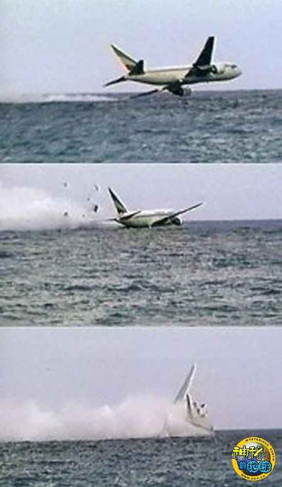 1996年,埃塞俄比亚航空公司的961号航班从亚的斯亚贝巴起飞,驶往科特迪瓦。起飞后20分钟,3名劫机犯冲进驾驶室,要求飞行员将飞机驶往澳大利亚,但当时飞机上并没有足够的燃料。飞行员曾劝说劫机分子将飞机降落在一个中转站,遭到拒绝。最终当飞机飞行在科摩罗群岛上空时,燃料用尽,飞行员试图迫降在海面上(如图),但灾难就在此时发生了——机上175名乘客中,最终只有50人幸存。