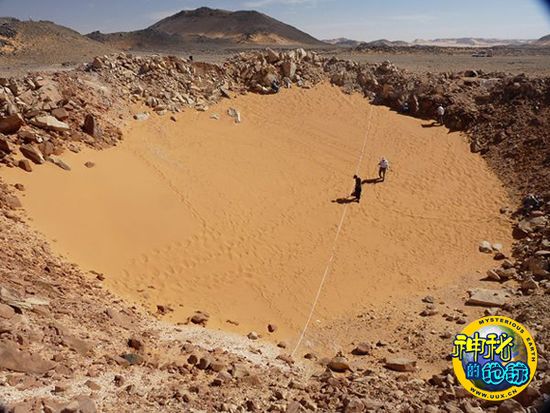 据美国《国家地理杂志》网站报道,今年2月,一个由埃及和意大利的专家组成的研究小组在使用谷歌地球时意外发现了位于撒哈拉沙漠偏远地区的巨大陨石坑。近日,研究小组抵达陨石坑现场。经测量,陨石坑的最宽处达45米,最深处距离地面16米。基于以上数据,研究人员估测,撞击地球的流星重约5000至10000公斤,直径仅有1.3米,但坠落速度超过每秒3.5公里。