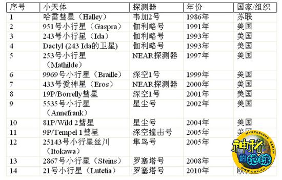 所有人类探测器造访过的小行星和彗星的列表