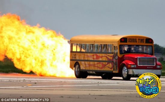 一辆普普通通的美国风格学校巴士被改装成喷火高速车,时速可达到367英里(约合每小时590公里)。这辆喷火高速车由保罗·斯坦德改装,采用功率强大的“幻影”喷气式战斗机发动机取代普通的校车发动机。