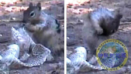 Video stills show a ground squirrel chewing on a rattlesnake's shed skin and then licking its body to apply the masticated mush. The act most likely persuades serpents that another snake, not a squirrel, is in the area.