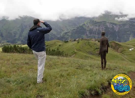 奥地利的阿尔卑斯山上立起100多个真人大小裸体塑像