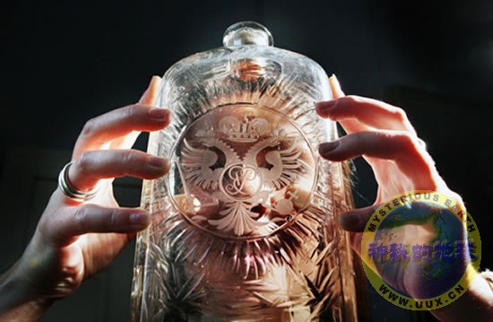 The vodka bottle, finely engraved with the Russian double-headed eagle and Catherine's royal monogram, belonged to the empress who reigned during the golden age of the Russian Empire.