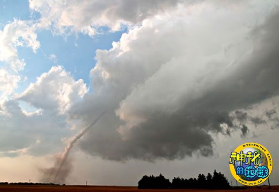 大雨滴能够引发龙卷风,图为2004年5月发生在美国堪萨斯州的一次龙卷风。