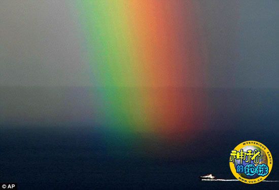 一位为美联社工作的摄影师在周四拍摄到了一组神奇的画面,巨大的彩虹笼罩天空,如同上帝在人间架假设的通往天堂的桥梁。摄影师表示,他对这组照片没有进行过任何的处理。