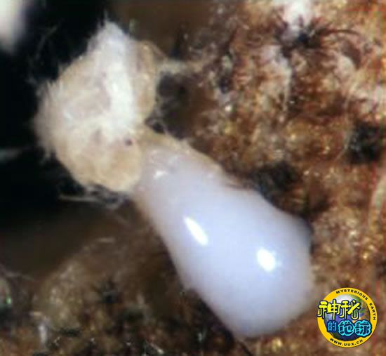 这只兵蚜虫正在分泌自己的体液,用来愈合宿主植物的伤口。