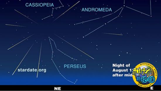 英仙座流星雨光临地球 来源: 神秘的地球 时间:2010年8月12日 11:20 8.英仙座流星雨路线图 英仙座流星雨路线图(Diagram courtesy Sky & Telescope) 要想观测2010年英仙座流星雨,应注意一颗颗流星从东北方向出现后,向天空多点延伸的路线,尤其是在午夜或午夜过后,正如这张2010年8月12日北半球夜空英仙座流星雨路线图所示。观测英仙座流星雨的最佳办法还是用肉眼,我们可以舒服地躺在地上或是躺椅上,静候流星划破夜空的美妙场景。 新浪环球地理(孝文) 上一页12345678 上一篇 下一篇