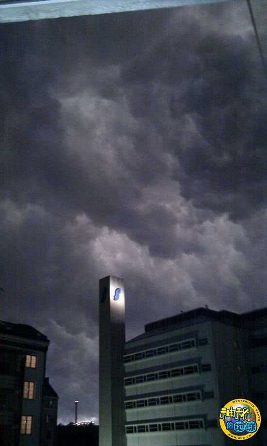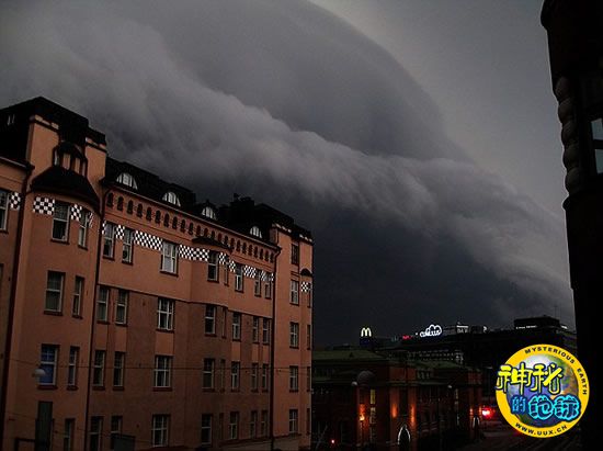 雷暴来袭之前,芬兰首都赫尔辛基上空出现可怕的积雨云将整个天空遮盖。