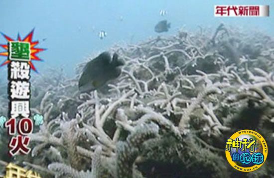 游客太多、核三温废水,导致垦丁珊瑚白化。 图片来源:台湾“今日新闻网”