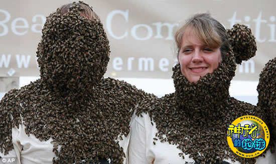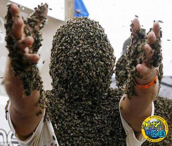 一男选手身上覆盖的蜜蜂超过2.27公斤