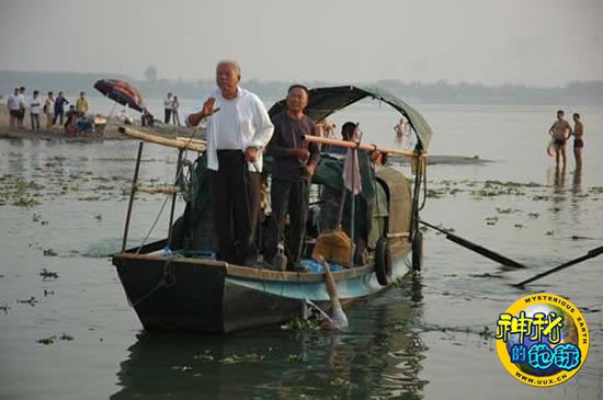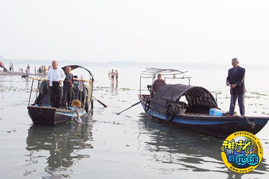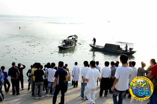 两船合力将尸体牵引到岸边,捞起一具送到岸边一具,再打捞下一具,荡漾的水波显示船的划动。据有人证实,这名捞尸人不姓陈,而是叫王守海。