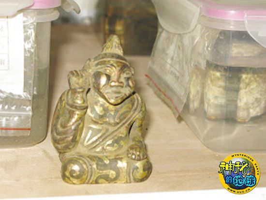 巧的是,就在记者脚下的浮出土面的器物十分独特,考古人员说,那就是一个洗澡用的铜器,只见铜灯上居然还覆盖着数枚浮石,“这是用来搓澡用的,印证了‘事死如生’那句话”。