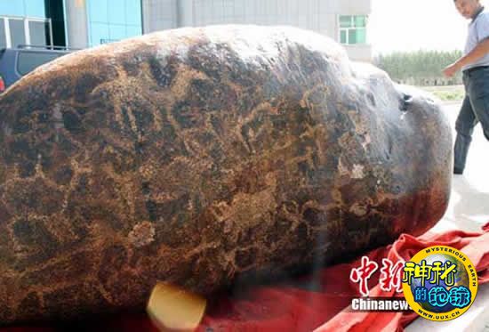 岩画呈朱红色,也有少量黑、黄色,一侧光亮鲜美,一侧有水滴穿石的印记,顶部略有风化,题材内容多为野生动物如鹿、羚羊、骆驼、野牛等,整体姿势像一头卧着的水牛,重近4吨左右。