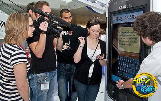 最后还得介绍一下,其实这是三星举办的一个市场活动,主要是为了推广自己的手机产品。Thompson能打破世界记录,除了平时每天都会发短信锻炼手指头之外,还在于SWYPE这款输入法。