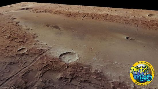 欧洲空间局刚刚公布一组火星照片,让人们有机会近距离一睹一个造型奇特的拉长型环形山的风采。
