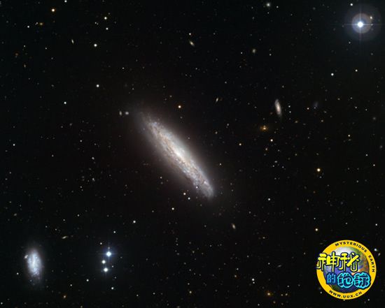 这张最新的可见光波段图像,使用了位于智利的拉西拉天文台MPG/ESO 2.2米望远镜及其广角成像仪,图中NGC4666位于正中心。这是一个星爆星系,距离地球约8000万光年,在其内部存在密集的恒星诞生区。星爆星系一般被认为是由星系间引力相互作用造成,包括图中左下方可见的NGC4668星系。