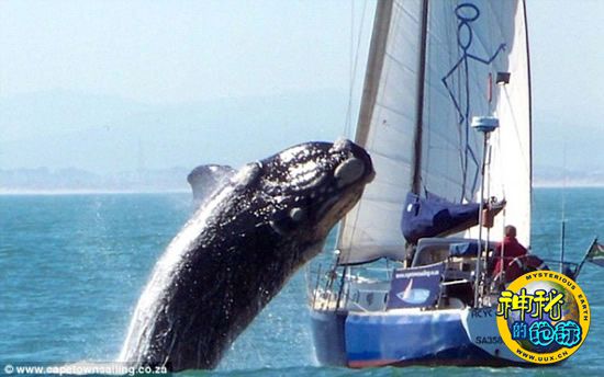 南露脊鲸经常重达40吨,在捕鲸业发展到鼎盛时期时,它们遭到大量捕杀,几乎已经灭绝,不过现在人们可以看到,这些巨大的动物过得非常开心。这是今年7月在开普敦近海拍到的一只跃出水面的南露脊鲸撞上一只帆船。