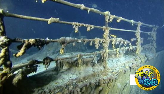在这张9月1日公布的照片中,冰柱状铁锈像瘟疫一样遍布“泰坦尼克”号沉船船首栏杆和锚上。“泰坦尼克”号沉船沉没于2.4英里(约合3.8公里)深的海底。这张照片和其他在8月底拍摄的“泰坦尼克”号照片均属于正在进行的“泰坦尼克”号探索任务(Expedition Titanic)收获的第一批成果。这次任务的目标是,利用声成像、声纳和3D摄像等技术保存“泰坦尼克”号现状资料,帮助确定沉船会被冲走多远,以及还能存在多久。