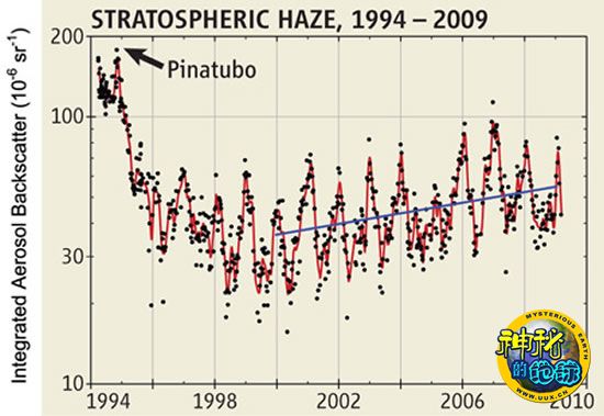 研究小组报告说,来自莫纳罗亚山和博尔德市的激光雷达分析结果显示,从2001年开始,同温层雾霾表现出了一个长期向上的趋势,其速率达到每年4%到7%。Hofmann指出:“这种趋势相当明显。”他说,火山活动并不应对此负责,这是因为最近的一些主要火山活动——例如发生在1991年的皮纳图博火山“世纪大爆发”——大都发生在多年以前,由此释放到同温层中进而形成雾霾的含硫气体早已消失殆尽。