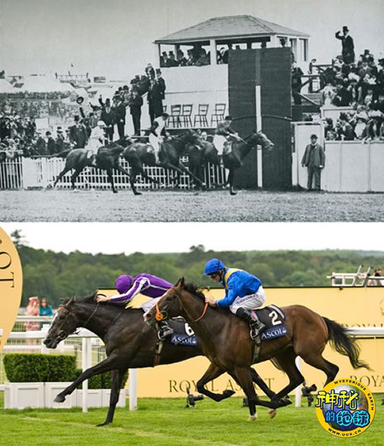 1900年(上图)与2009年的照片显现了职业赛马骑师在骑乘姿势上的变化。