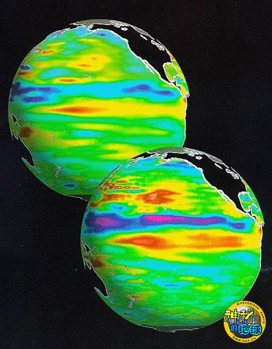 一个多世纪以来,船长和渔夫们都知道在太平洋东部有一个气候的回归模式——大约每3年到4年重复一次。这种气候模式被称为厄尔尼诺,或是“小男孩”,它所造成的影响在圣诞节前后最为明显。厄尔尼诺现象是太平洋赤道海域水温异常升高引起的一种异常气候现象,往往给人类造成巨大损失。科学家现在已经搞清,当一片狭长且界限分明的海水——比正常情况至少升温0.5摄氏度——在赤道太平洋东部海域聚集,并在春季末期与夏季初期向西方扩散时,一个厄尔尼诺的周期便开始了。卫星数据现在已经证实厄尔尼诺现象目前正在赤道太平洋东部孕育,科学家在美国国家海洋和大气管理局(NOAA)公布了这一消息。