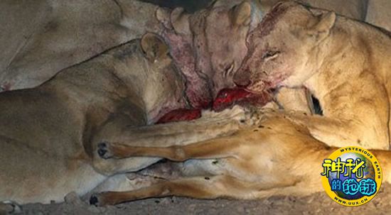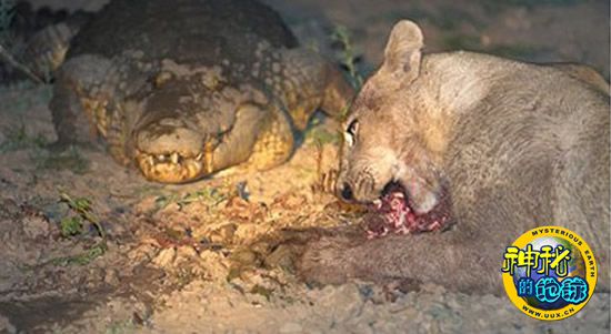 鳄鱼与狮子抢食