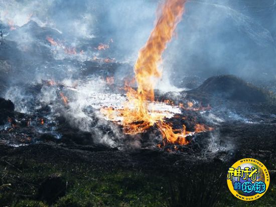 2008年,火旋风从英国班格尔某农场燃烧的泥煤中升起。福托菲尔说,地面植被燃烧后释放的富含碳的可燃气体是大多数火旋风的燃料。他说:“地面植被的热量到了一定程度后会释放气体,有些气体不能燃烧,因为它的周围没有足够多的氧气。”