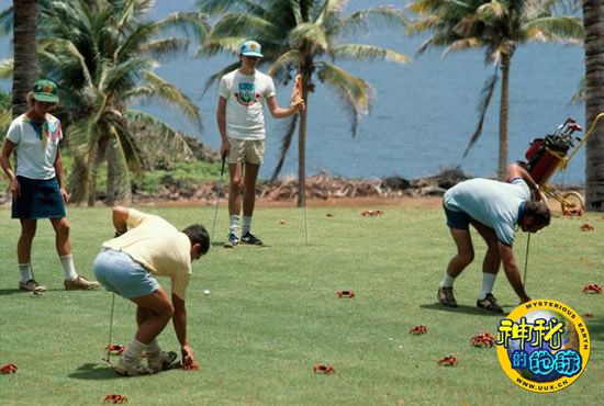 澳大利亚圣诞岛红蟹壮观的百万大迁徙 来源: 神秘的地球 时间:2010年9月07日 11:32 4.红蟹军团闯进球场 红蟹军团闯进球场(图片来源:Roger Garwood/National Geographic) 特纳表示,包括80后在内的高尔夫爱好者都知道如何应付一年一度的红蟹入侵。她说:“高尔夫球场有一项特殊规定——如果红蟹将球碰走,你也只能跟着球走,在球停下来的地方击球。”庆幸的是,圣诞岛红蟹带来的并不只是麻烦。根据圣诞岛国家公园网站刊登的消息,它们的排泄物是重要的雨林肥料,而挖洞行为也会起到翻土和帮助土壤通气的作用。 上一页12345678下一页 上一篇 下一篇
