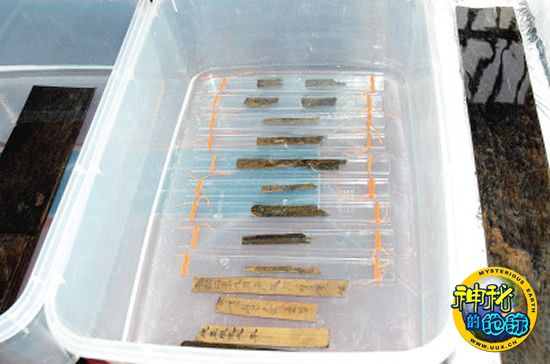 长沙古井简牍发掘获重大成果 来源: 神秘的地球 时间:2010年9月10日 13:45 图为1900多年前的木简,字迹清晰秀丽,一些简牍木质纹理尚存,保存非常完好(9月9日摄)。 9月9日,长沙市文物考古研究所对外界宣布,对长沙五一广场地铁工地内一东汉古井展开的抢救性考古发掘已经结束,发现简牍数量之大、简牍形制之独特等均为国内罕见。目前,出土简牍被封装于210个大小盆内,未来将展开细致的揭剥、清洗、释文等研究工作。 新华社记者 苏晓洲摄 上一篇 下一篇 TAG: 古井 简牍