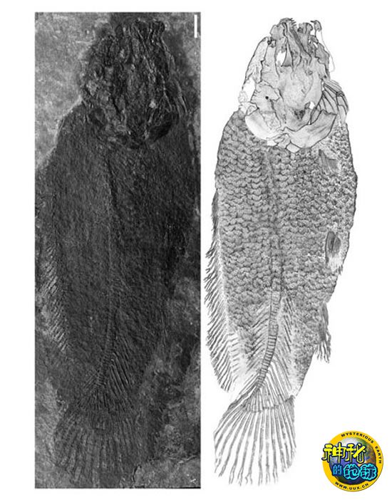 东方圆尾鱼正型标本(左)和线条复原图(右)