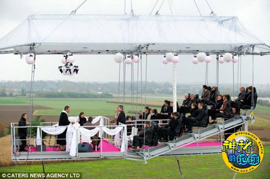 来自布鲁塞尔的杰若恩·基珀斯和桑德拉·基珀斯夫妇成为世界上第一对在空中举行婚礼的新人,并且以蹦极的形式宣誓。新娘、新郎以及司仪站在巨大的起重机上,20多名宾客被绑在空中平台的椅子上,只有腿部可以随意摇摆。旁边的第二个平台上安排着一支管弦乐队和一名钢琴家。